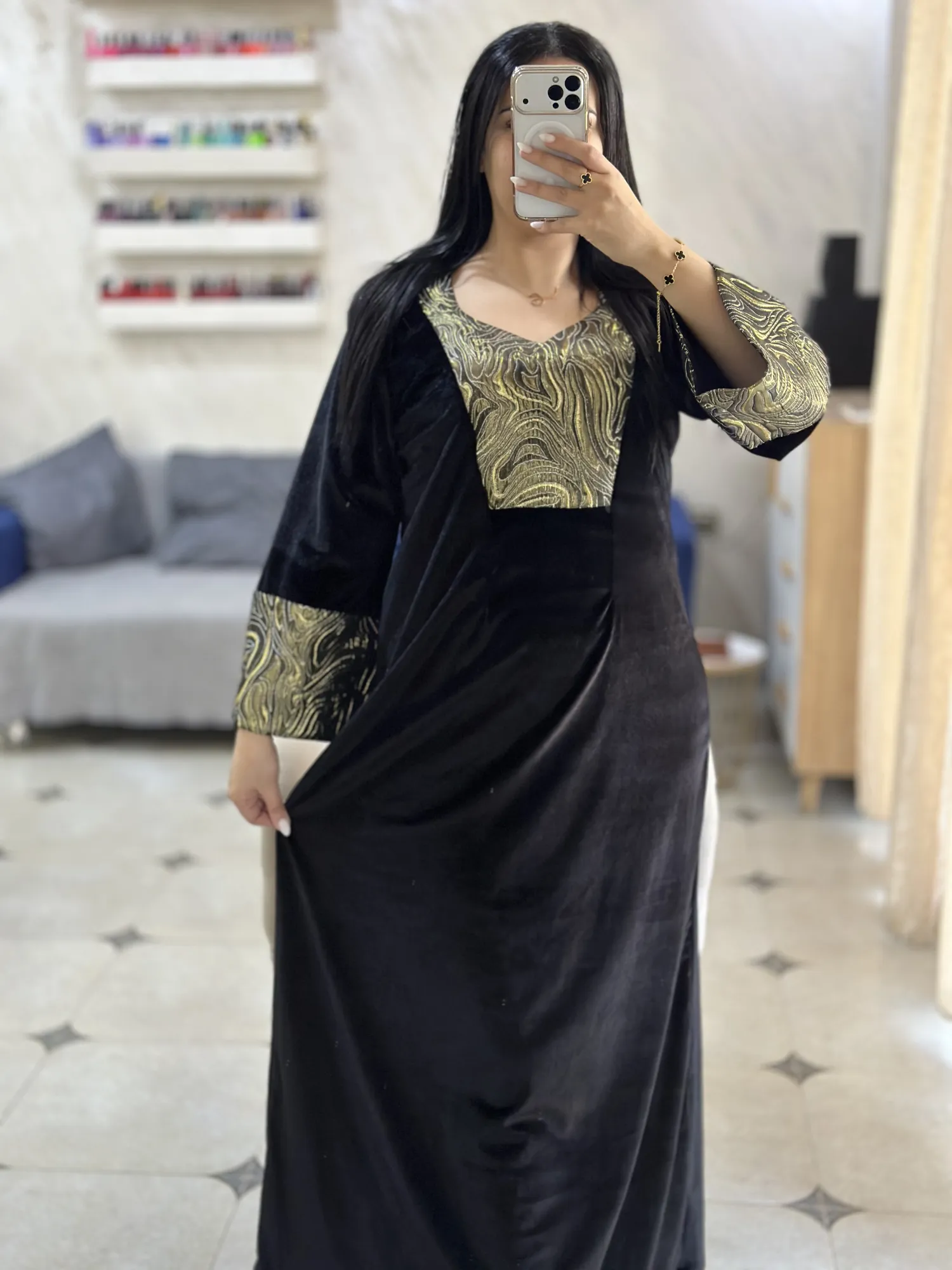 فستان قطيفة ناعم… طلة تهدّي القلب وتفرّح العين 🤍